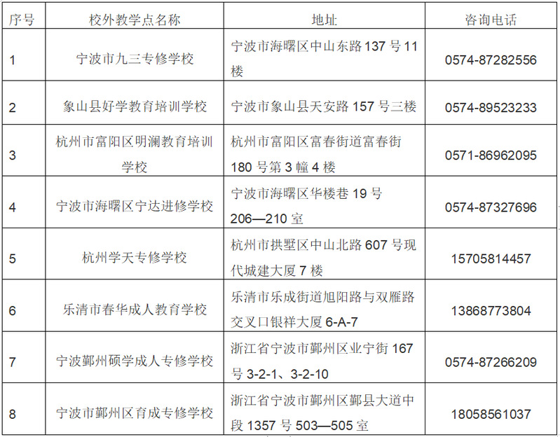 各教学站点,详见:校外教学点招生咨询联系方式。